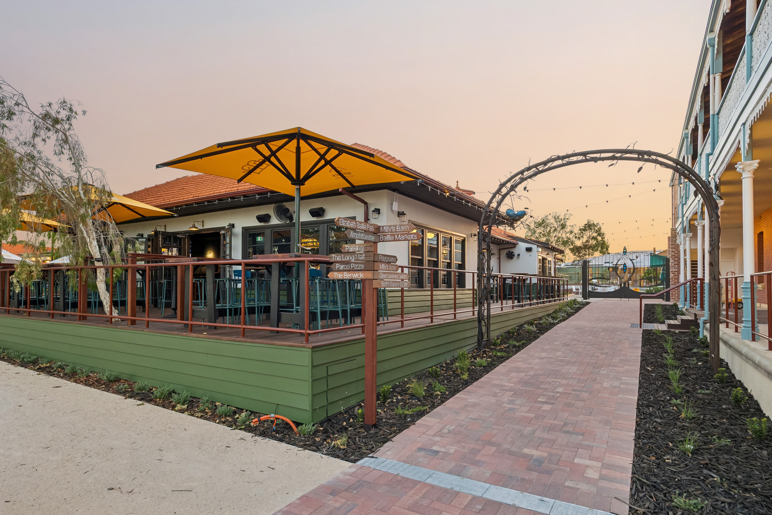 The Edward Millen Hospitality Redevelopment is a transformation of two century-old heritage buildings and their surrounding grounds into a hospitality precinct. Featuring a gastropub, distillery, bakery, café, gelato shop, art studios, gardens, markets, and family-friendly spaces.