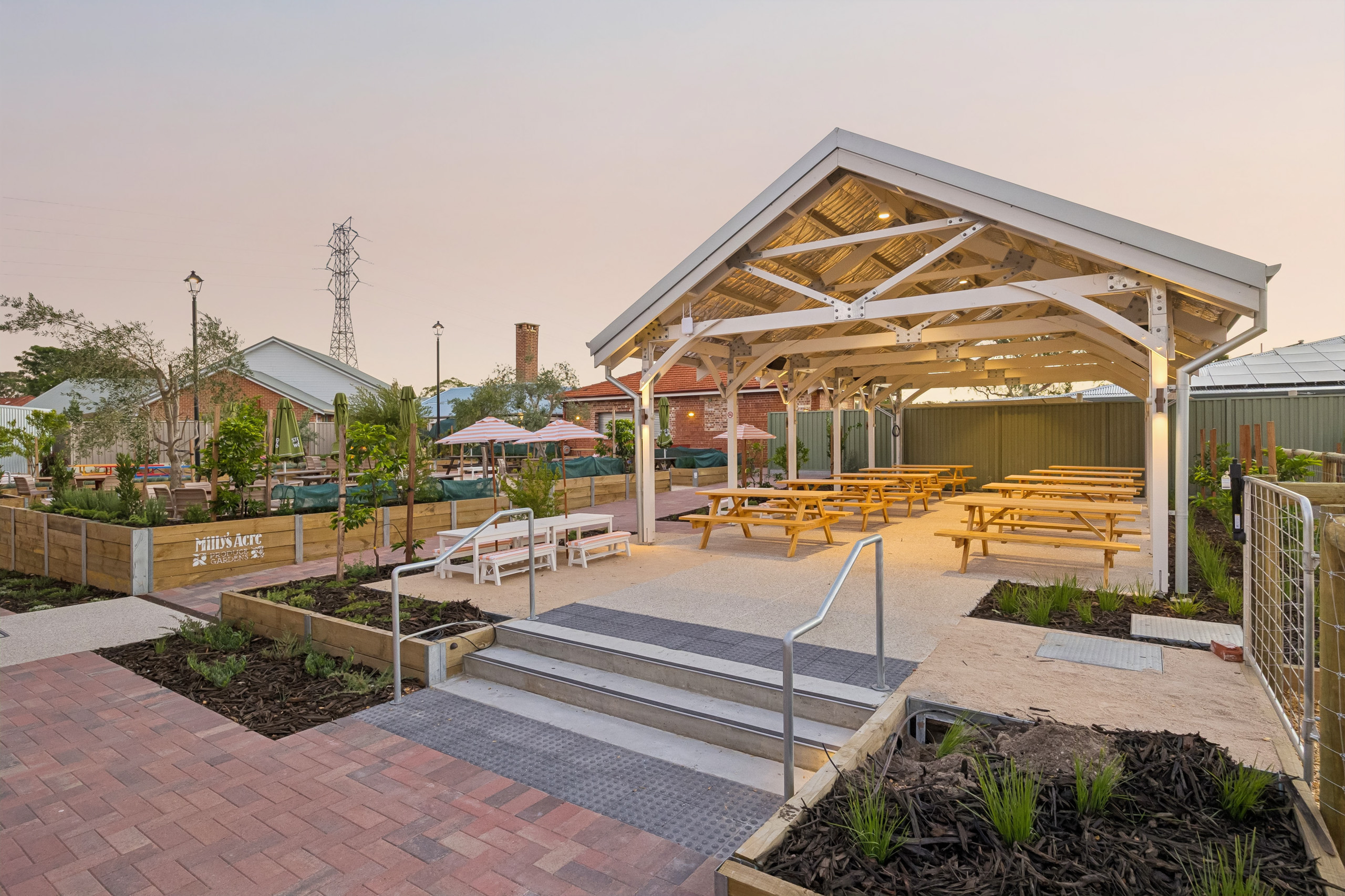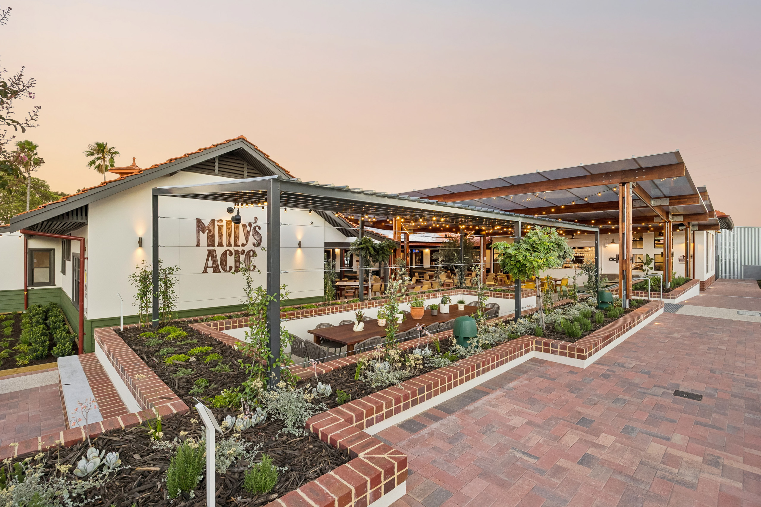 The Edward Millen Hospitality Redevelopment is a transformation of two century-old heritage buildings and their surrounding grounds into a hospitality precinct. Featuring a gastropub, distillery, bakery, café, gelato shop, art studios, gardens, markets, and family-friendly spaces.